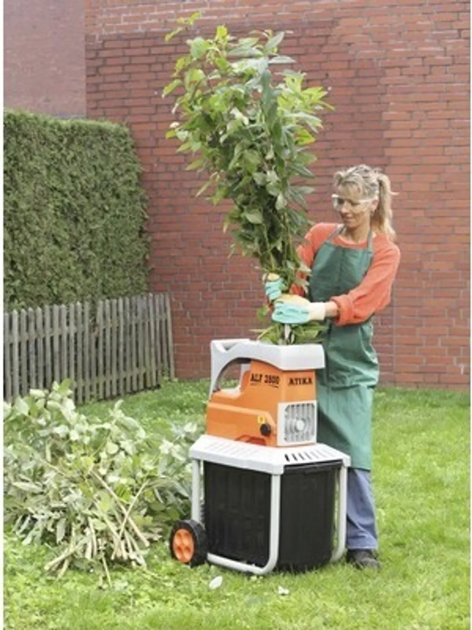 Für kontinuierliches Arbeiten steht eine integrierte Fangbox zur Verfügung, die Häckselgut zuverlässig aufnimmt. Zwei Räder erleichtern den Transport dorthin, wo der Häcksler gebraucht wird. So entsteht aus Heckenschnitt, Laub- und Astresten kompaktes Material.