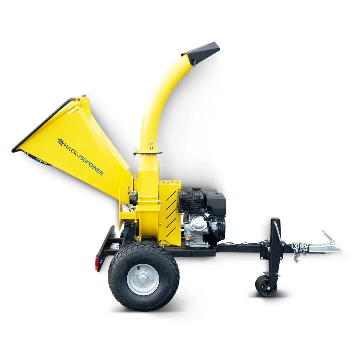 Die robuste Messerhäcksler-Konstruktion verarbeitet Material bis zu 120 mm Durchmesser. Große Luftbereifung erleichtert das Manövrieren, während die serienmäßige Anhängerkupplung den Transport vereinfacht. Ausgelegt für den Außeneinsatz bietet der HACK-150POWER praxisgerechte Leistung und durchdachte Details.