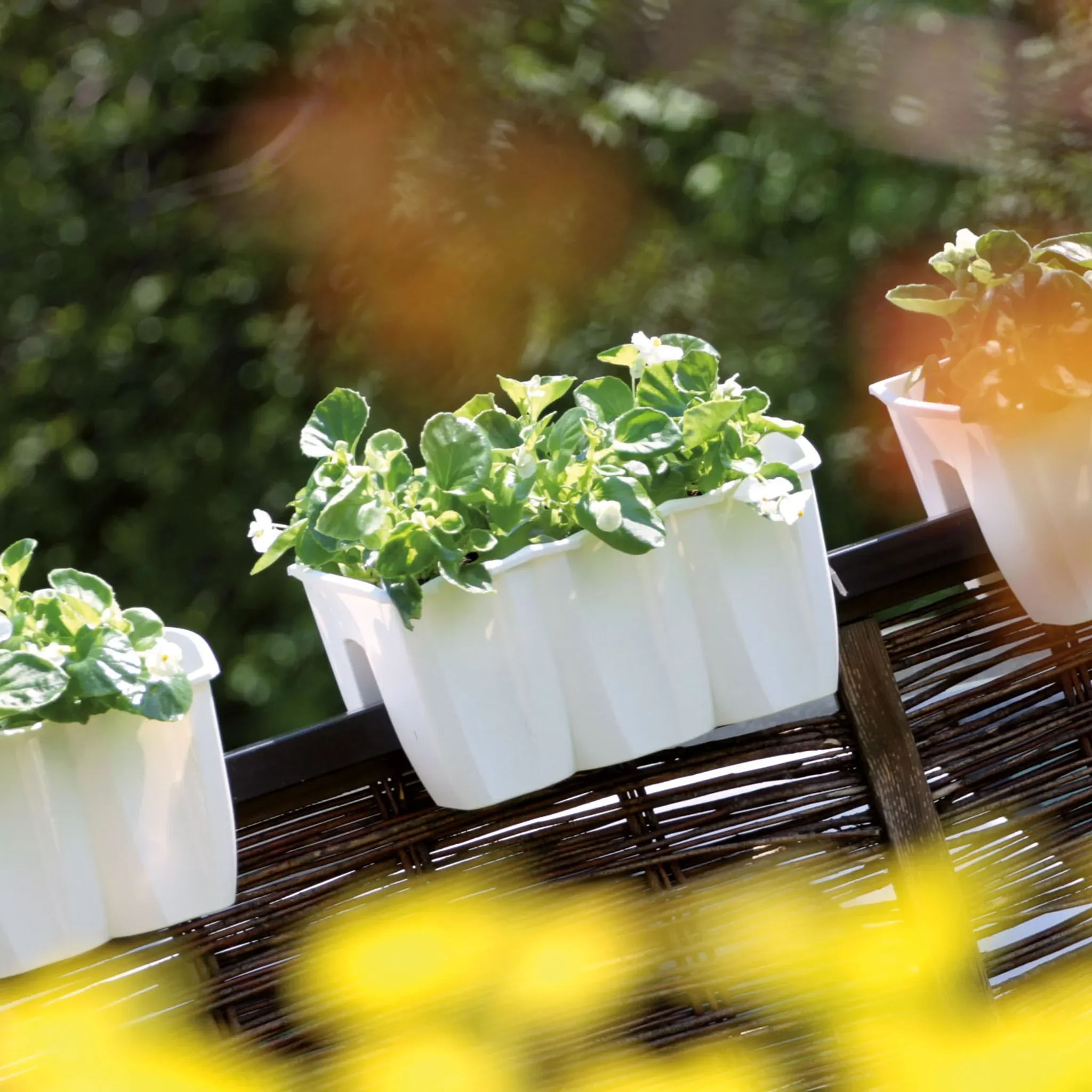 Der Geländer-Blumenkasten der Serie „CROWN“ ist eine praktische und stilvolle Lösung für Balkon-, Terrassen- und Verandageländer. Das klare Design in Weiß setzt Pflanzen harmonisch in Szene und ergänzt moderne wie klassische Außenbereiche.