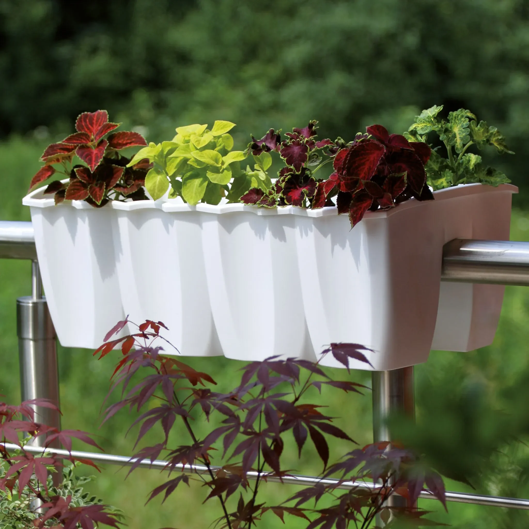 Highlights: Werkzeuglose Montage, sicherer Halt am Geländer, langlebiger Kunststoff, ideal für Balkon- und Terrassenbegrünung.