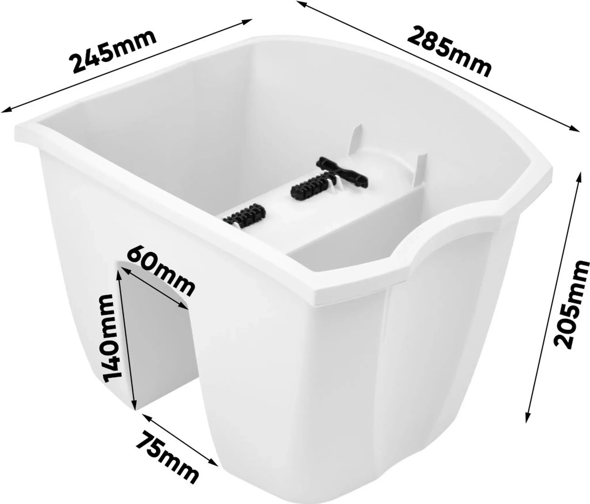 Der Kasten passt auf Geländer mit bis zu 6 cm Breite und wird mit einem Befestigungsset inklusive zweier Fixierelemente geliefert. Die Montage erfolgt werkzeuglos und sorgt für einen stabilen Halt ohne Kippen. Ideal für direktes Bepflanzen mit Blumen oder Grünpflanzen.
