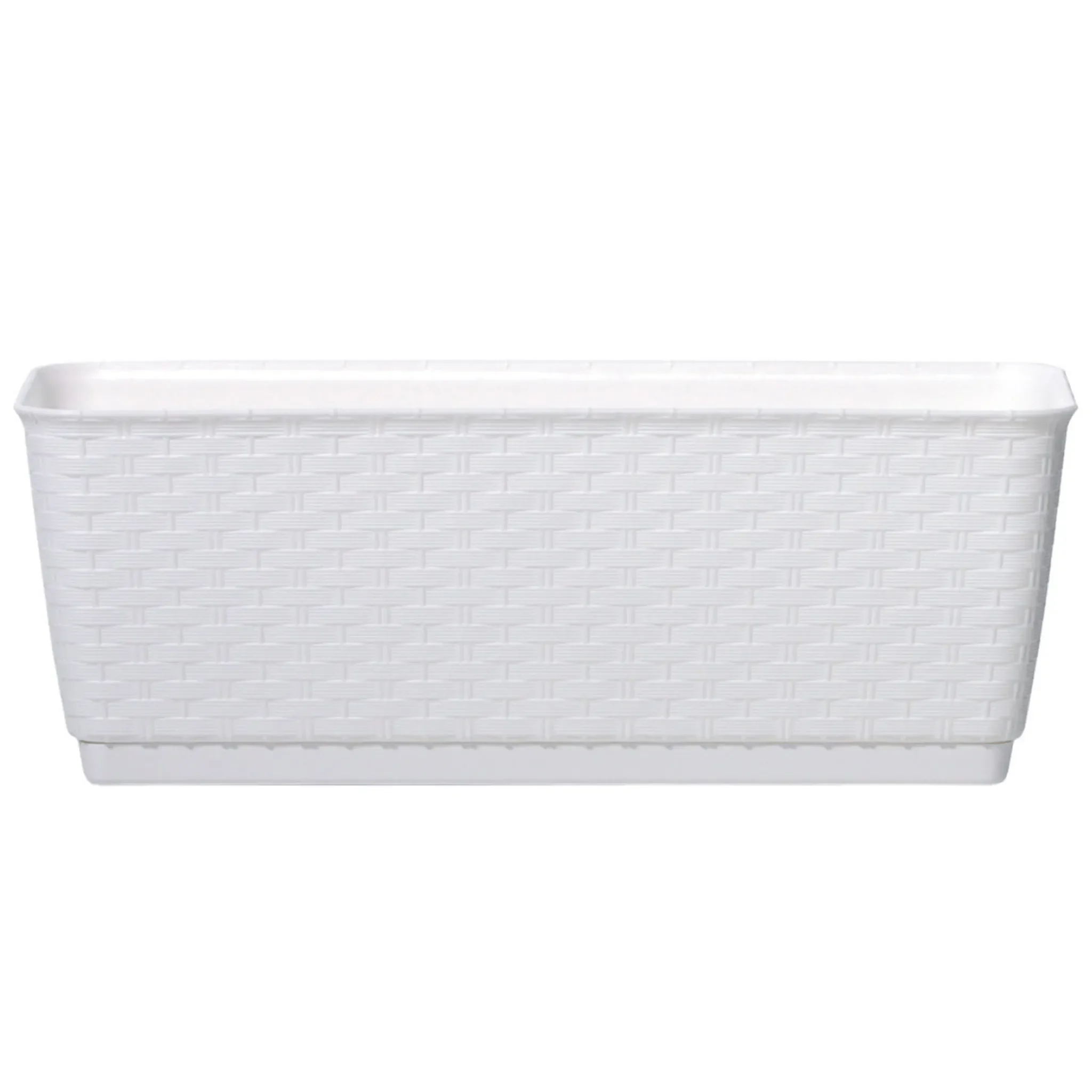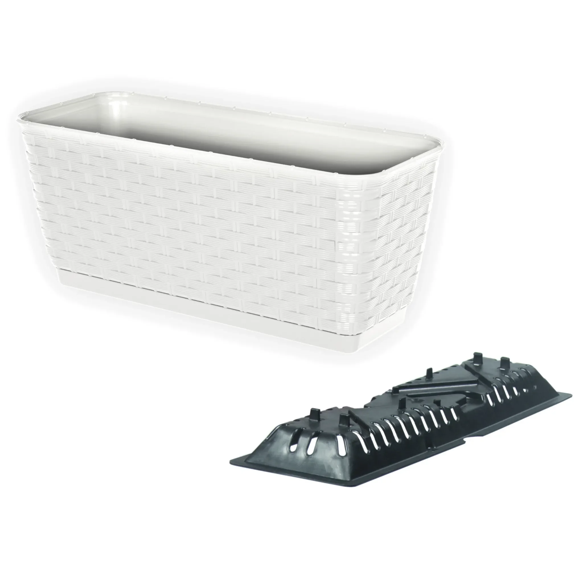 Blumenkasten Rattan-Optik – Weiß, mit Bewässerungssystem