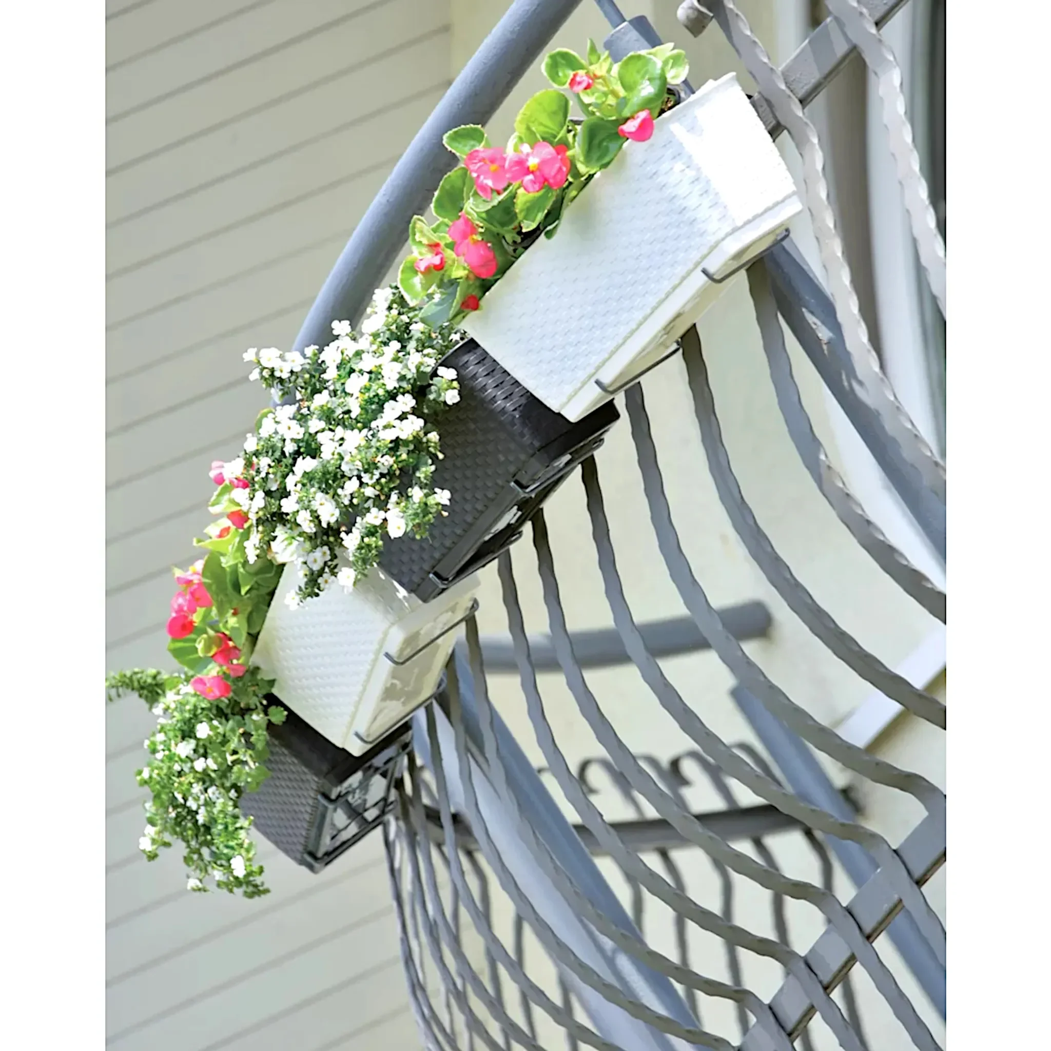Gefertigt aus hochwertigem Kunststoff ist der Blumenkasten besonders leicht, formstabil und widerstandsfähig gegen UV-Strahlung. Das integrierte Bewässerungssystem mit Abstandshalter unterstützt eine gleichmäßige Wasserversorgung und sorgt für optimale Wachstumsbedingungen Ihrer Pflanzen.