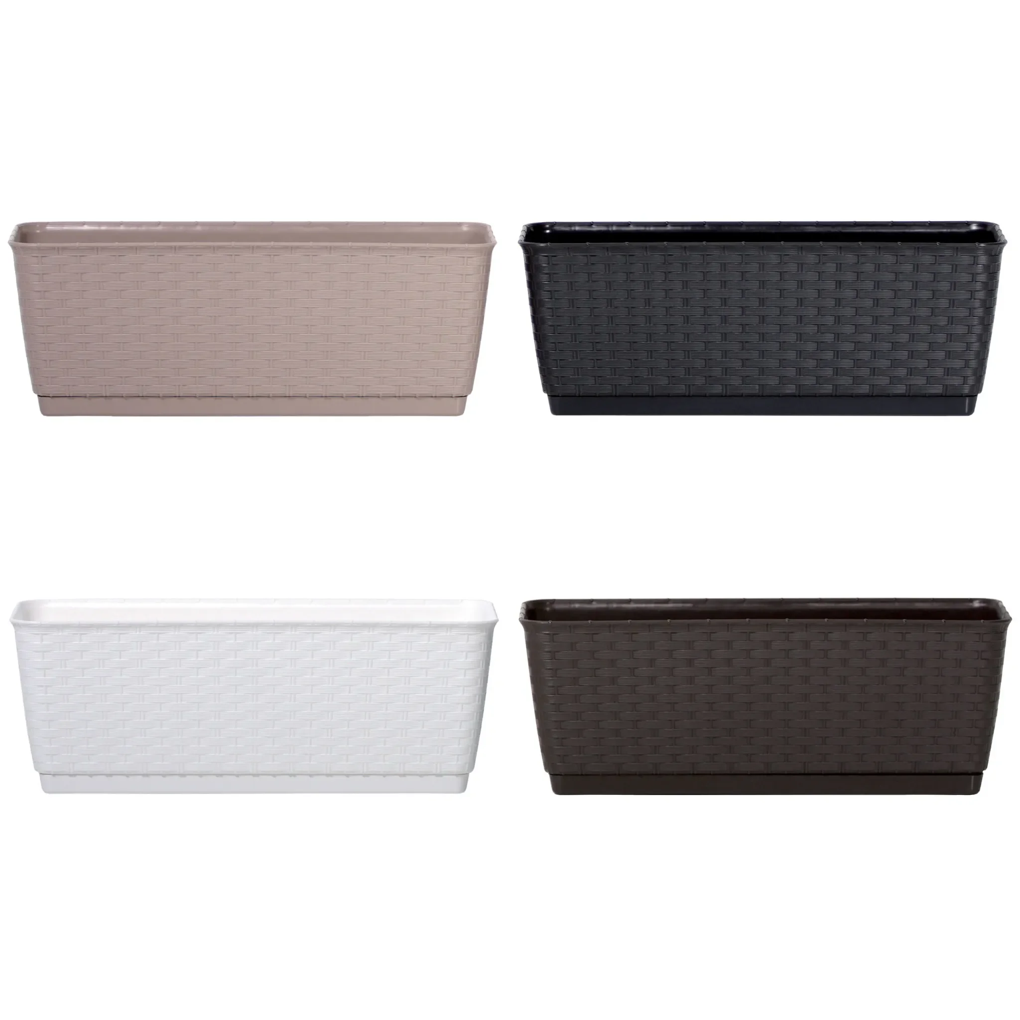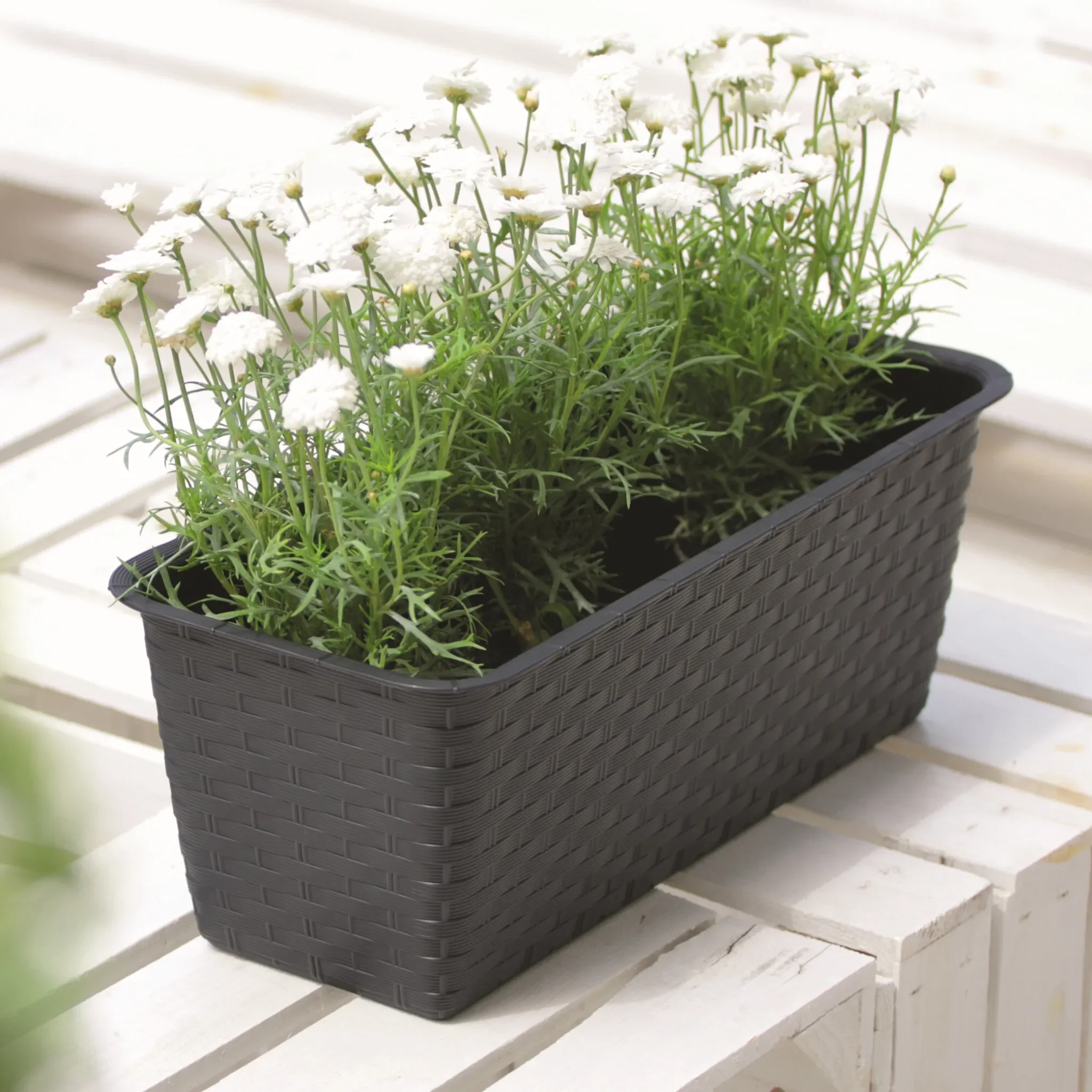 Dieser moderne Pflanzenkasten in eleganter Rattan-Optik ist die ideale Wahl für Balkone und Terrassen. Die strukturierte Oberfläche erinnert optisch an echtes Rattan und harmoniert perfekt mit zeitgemäßen Balkon- und Gartenmöbeln.