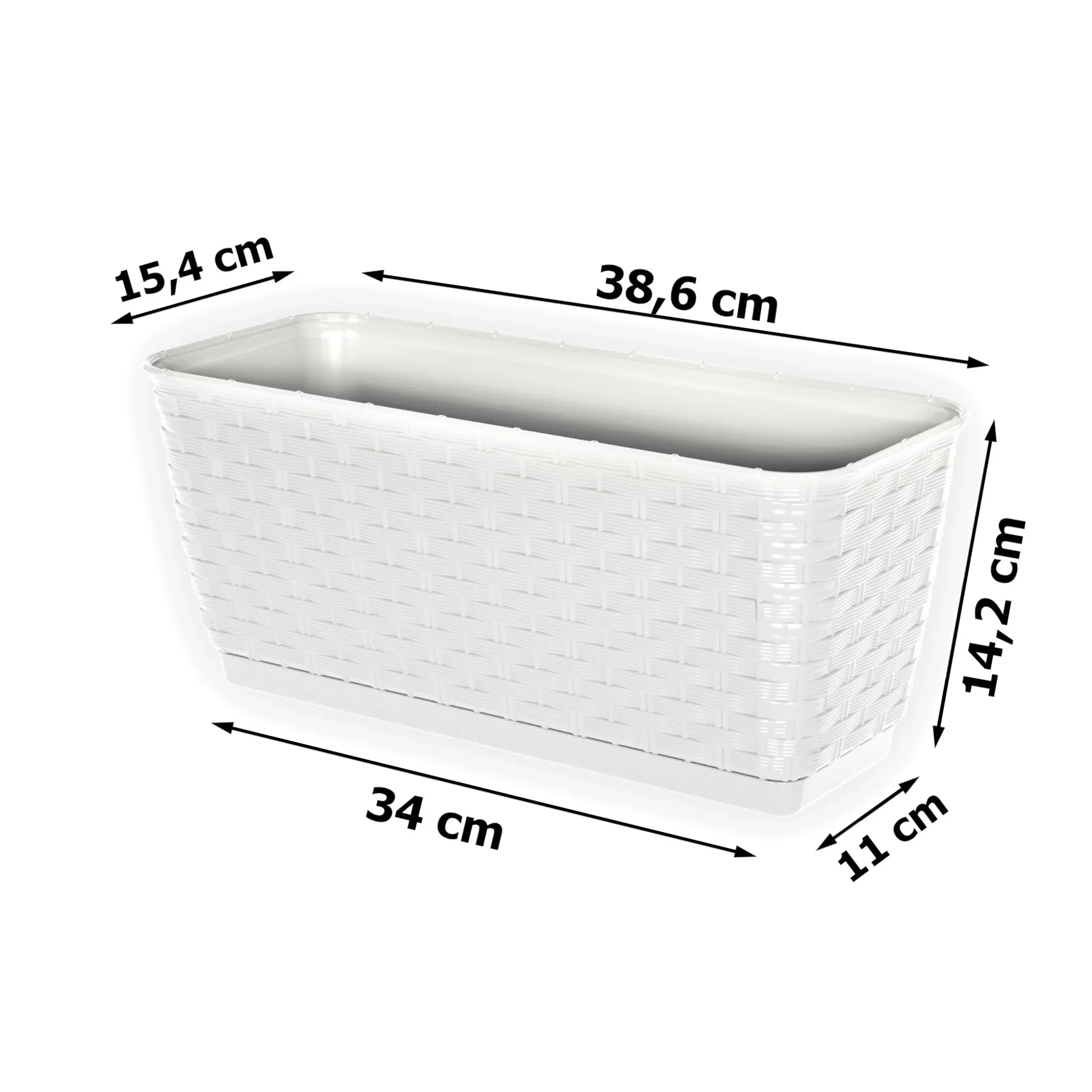 Produktinformationen "Blumenkasten Rattan-Optik – Weiß, mit Bewässerungssystem"