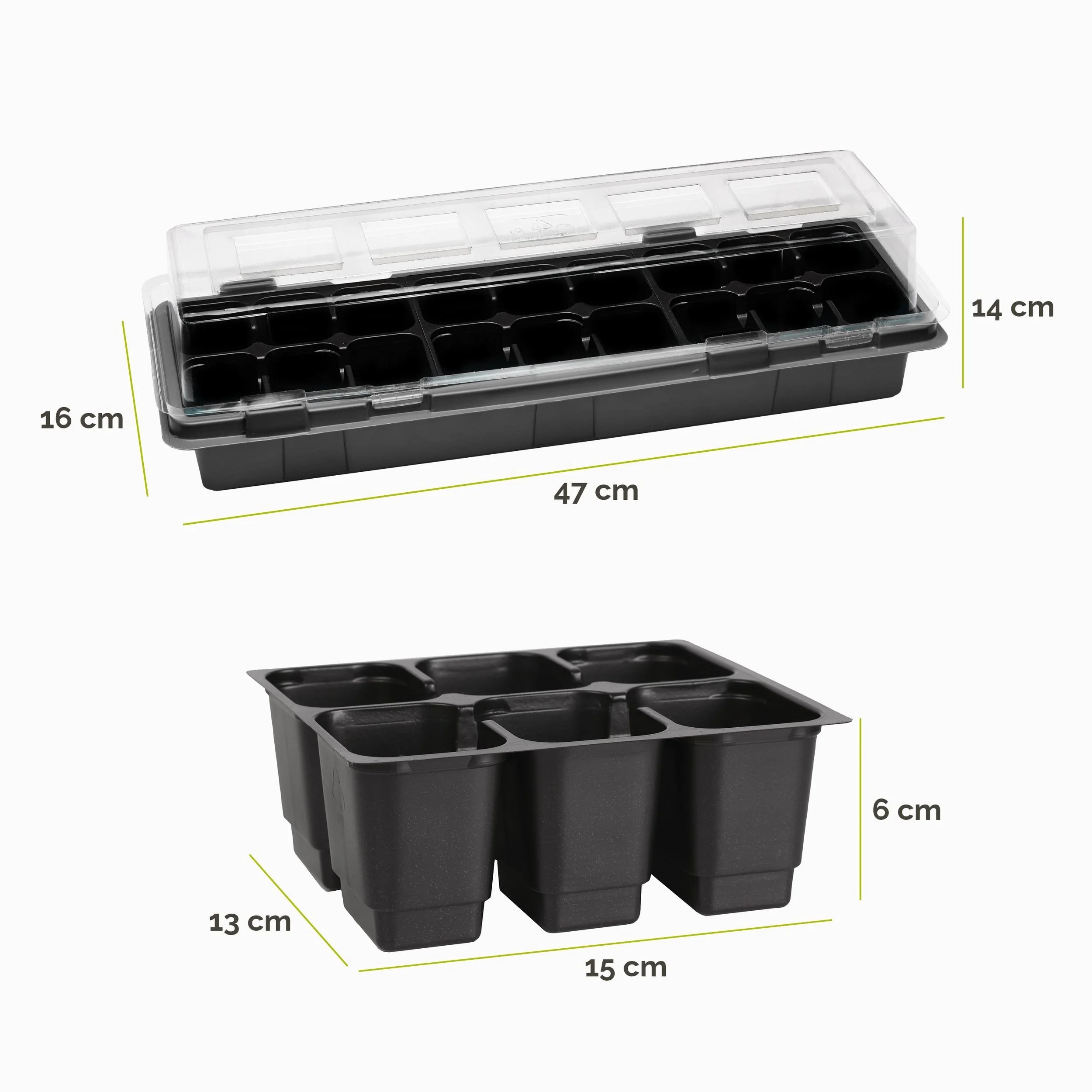 | Im Paket | 1 × Anzuchtset mit Töpfen, Schalen, Untersetzer und Deckel |