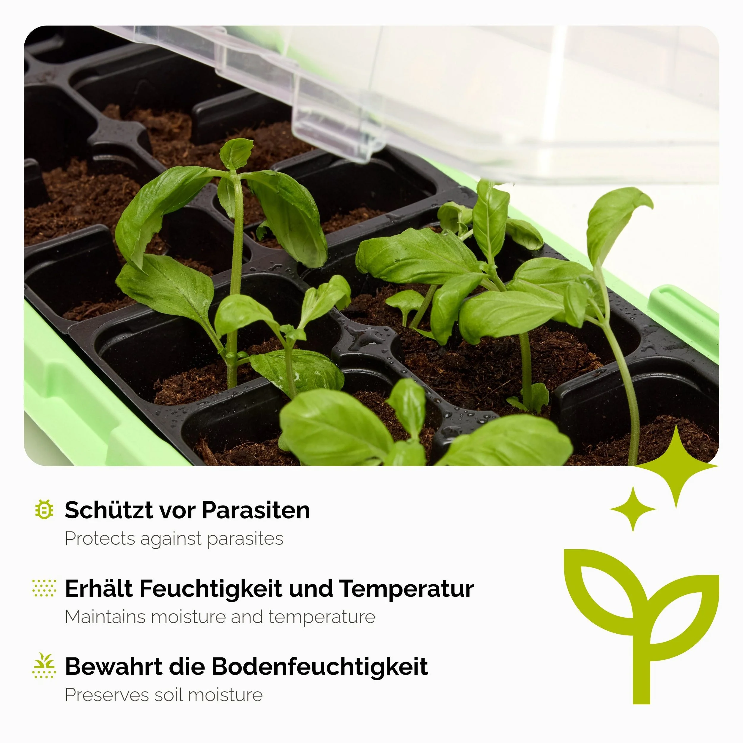 | Produkttyp | Anzuchtset / Mini-Gewächshaus |
