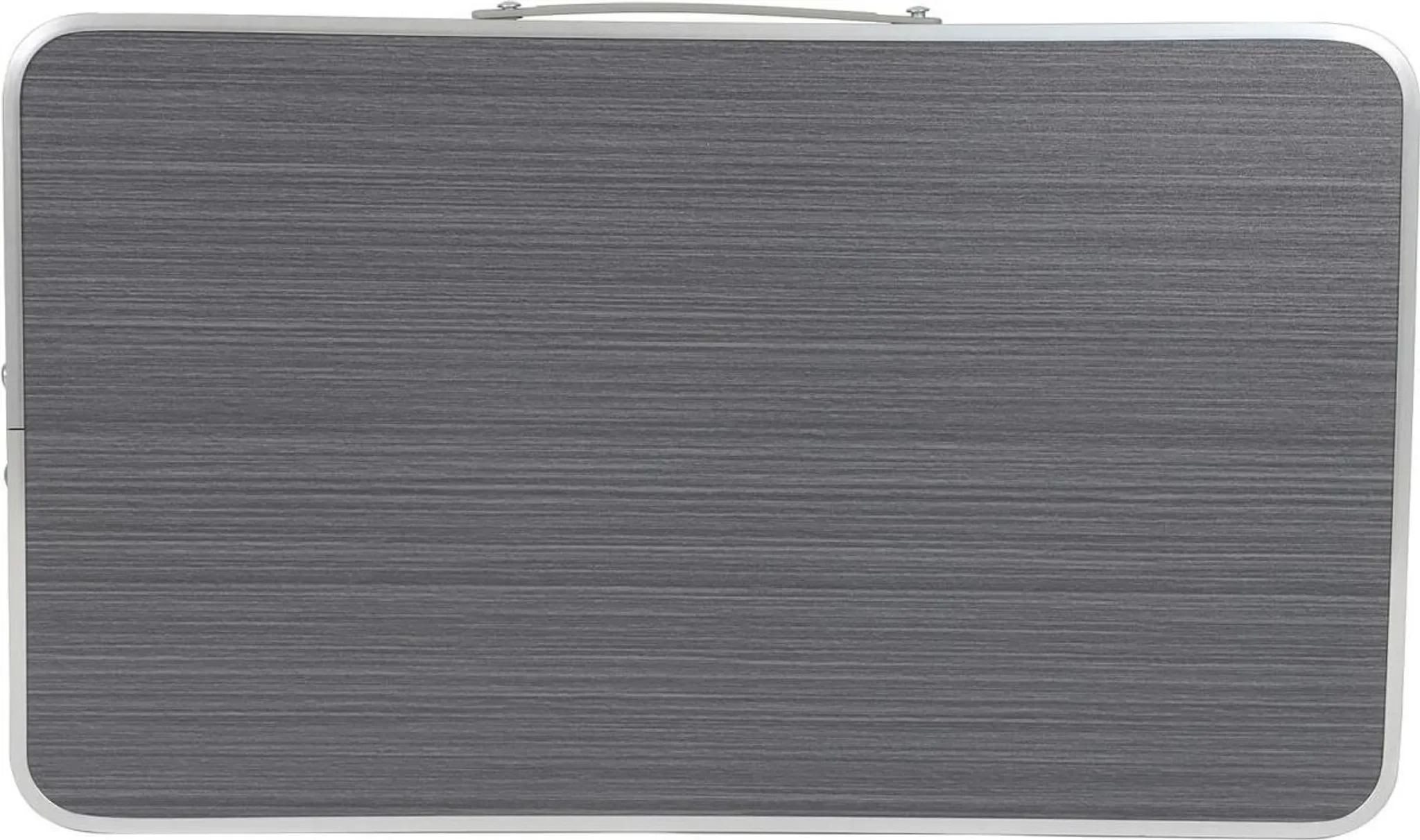 Der robuste Aluminiumrahmen sorgt für sicheren Stand, während die strapazierfähige MDF-Tischplatte eine pflegeleichte und langlebige Oberfläche bietet. Dank des geringen Gewichts und des flachen Packmaßes lässt sich der Tisch mühelos transportieren und platzsparend verstauen.