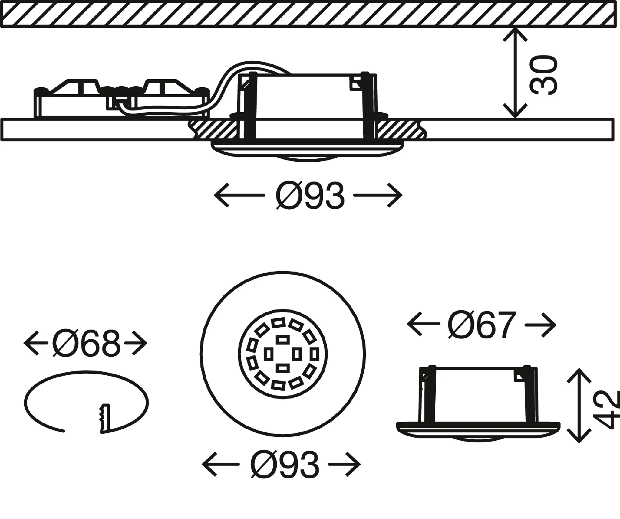 | Einbaumaße | Ø 68 mm × Einbautiefe 30 mm |