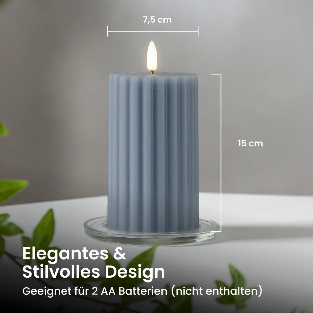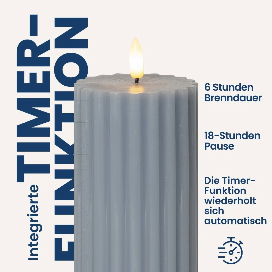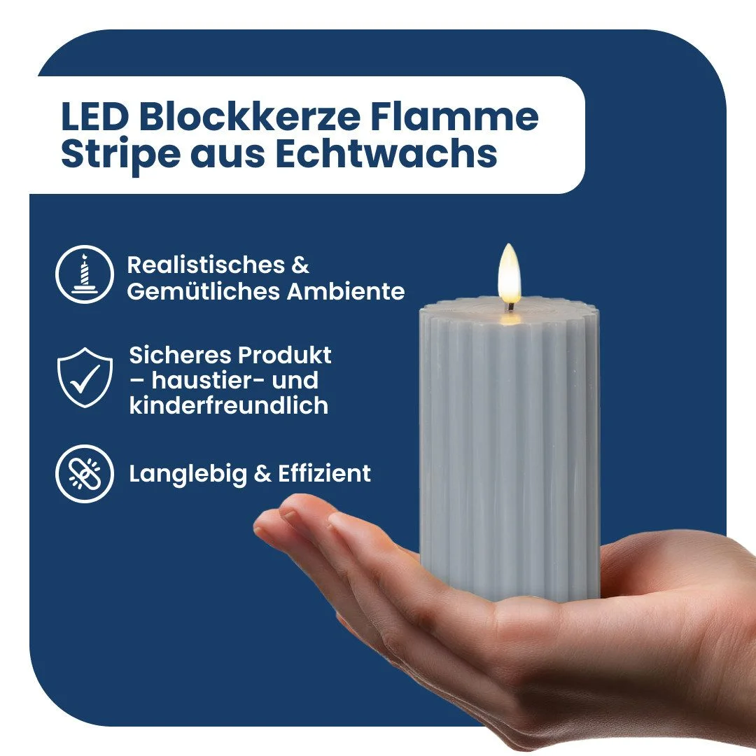 LED-Stumpenkerze „Flamme Stripe“ – Echtwachs, flackernd