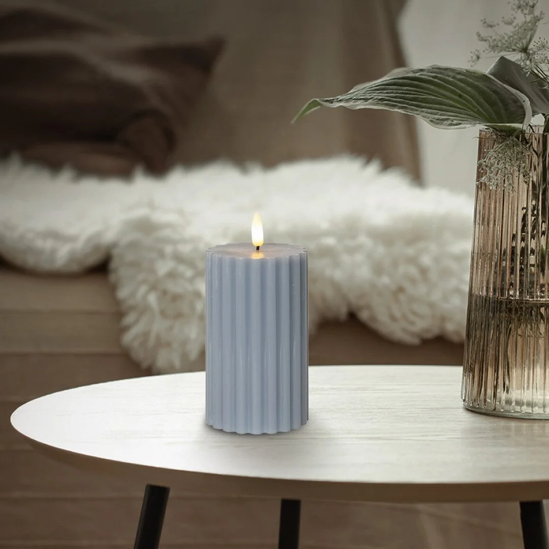 Die LED-Stumpenkerze „Flamme Stripe“ sorgt mit ihrer sanft flackernden LED-Flamme für eine warme, gemütliche Atmosphäre – ganz ohne Brandgefahr. Der Kerzenkörper aus echtem Wachs mit feiner Rillenstruktur wirkt besonders hochwertig und täuschend realistisch.