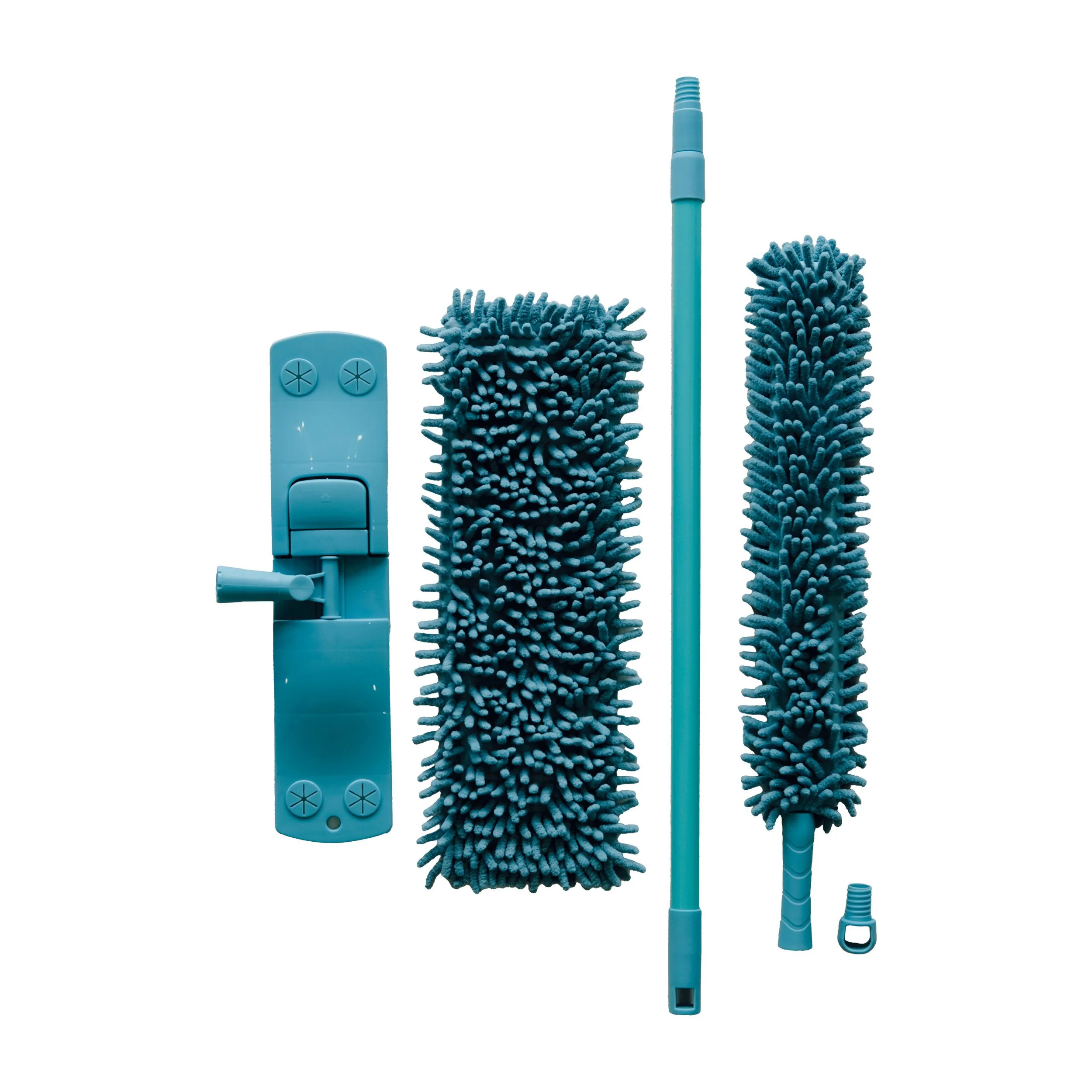Dieses 4-teilige Reinigungs-Set kombiniert einen Bodenwischer mit einem flachen, flexiblen Staubschwert und einer verstellbaren Teleskopstange bis 130 cm. Die hochwertige Mikrofaser entfernt Staub, Schmutz und Tierhaare zuverlässig – trocken oder leicht feucht, ganz ohne Streifen.