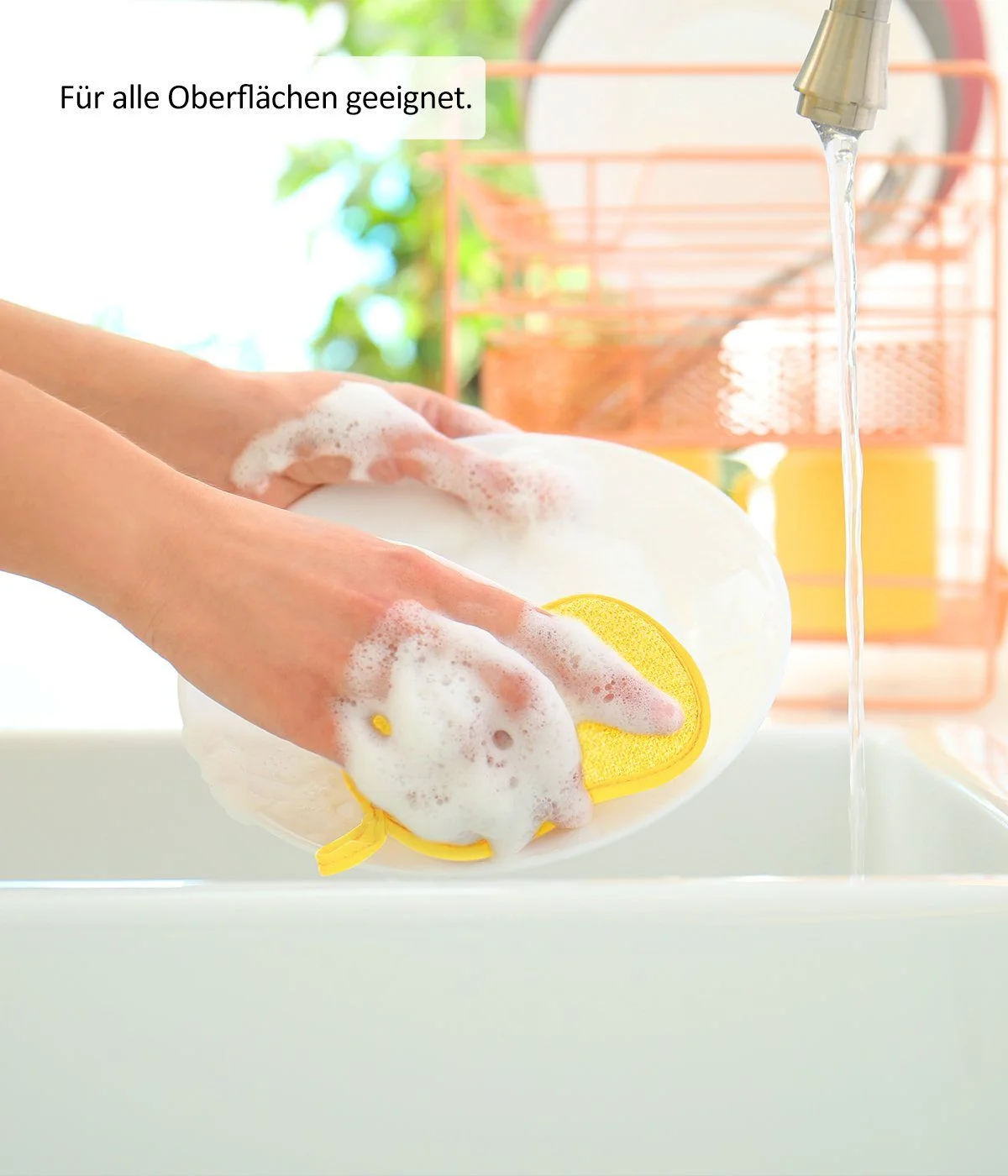 Dank der zwei funktionalen Seiten lassen sich sowohl empfindliche Oberflächen schonend reinigen als auch hartnäckige Verschmutzungen effektiv entfernen – ganz ohne Kratzer auf Antihaft-Beschichtungen, Glas oder Marmor.