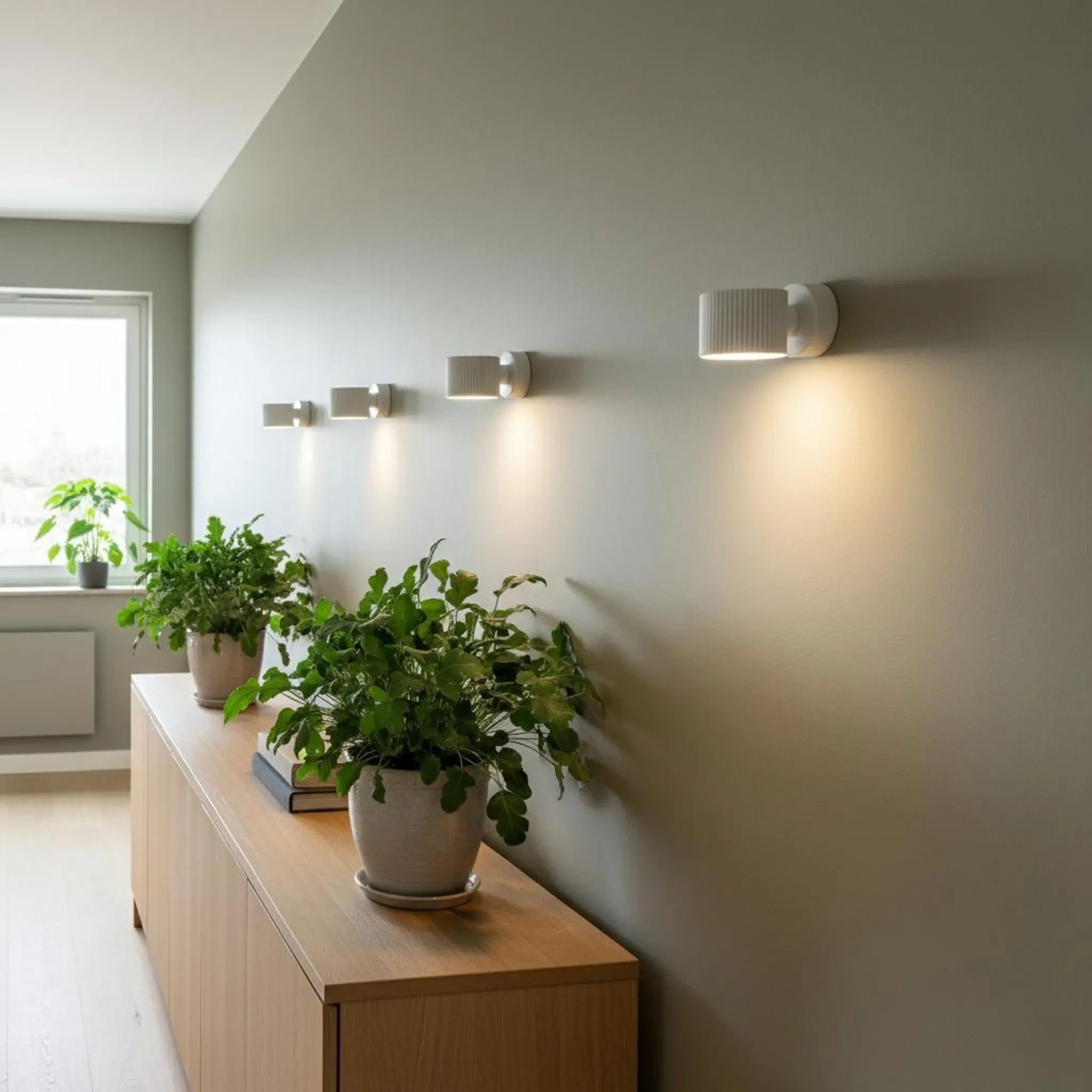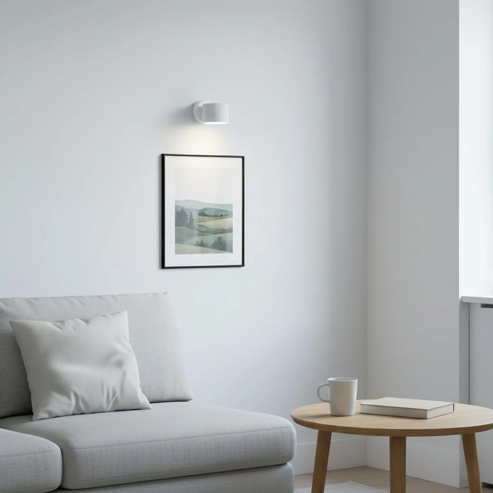 Die Wandlampe „Orbin“ überzeugt durch ihre klare, minimalistische Formensprache und eine fein gerippte Oberfläche. Die weiße Farbgebung (RAL9016) sorgt für eine helle, dezente Optik und fügt sich harmonisch in moderne Wohnkonzepte ein – ideal für Flure, Treppenhäuser oder als stilvolle Akzentbeleuchtung.