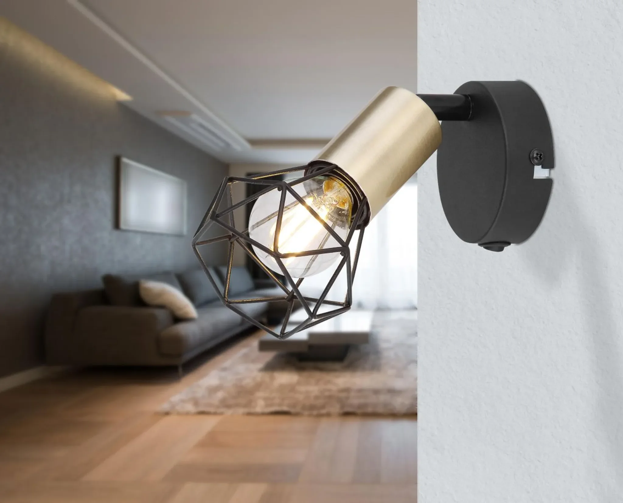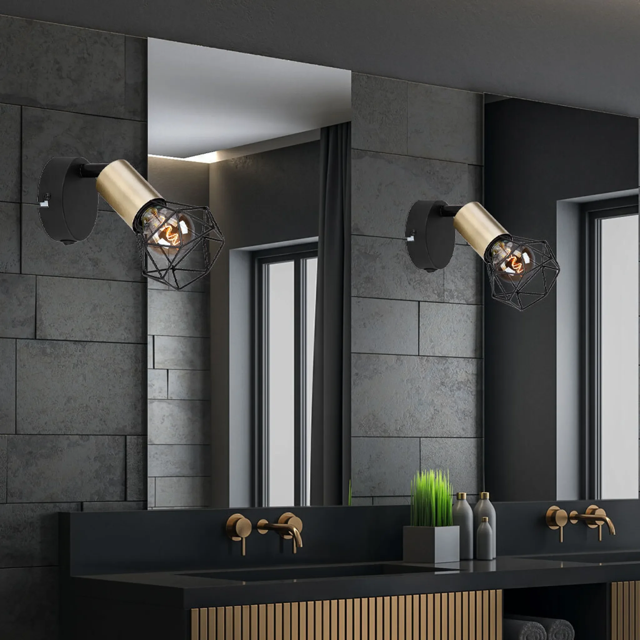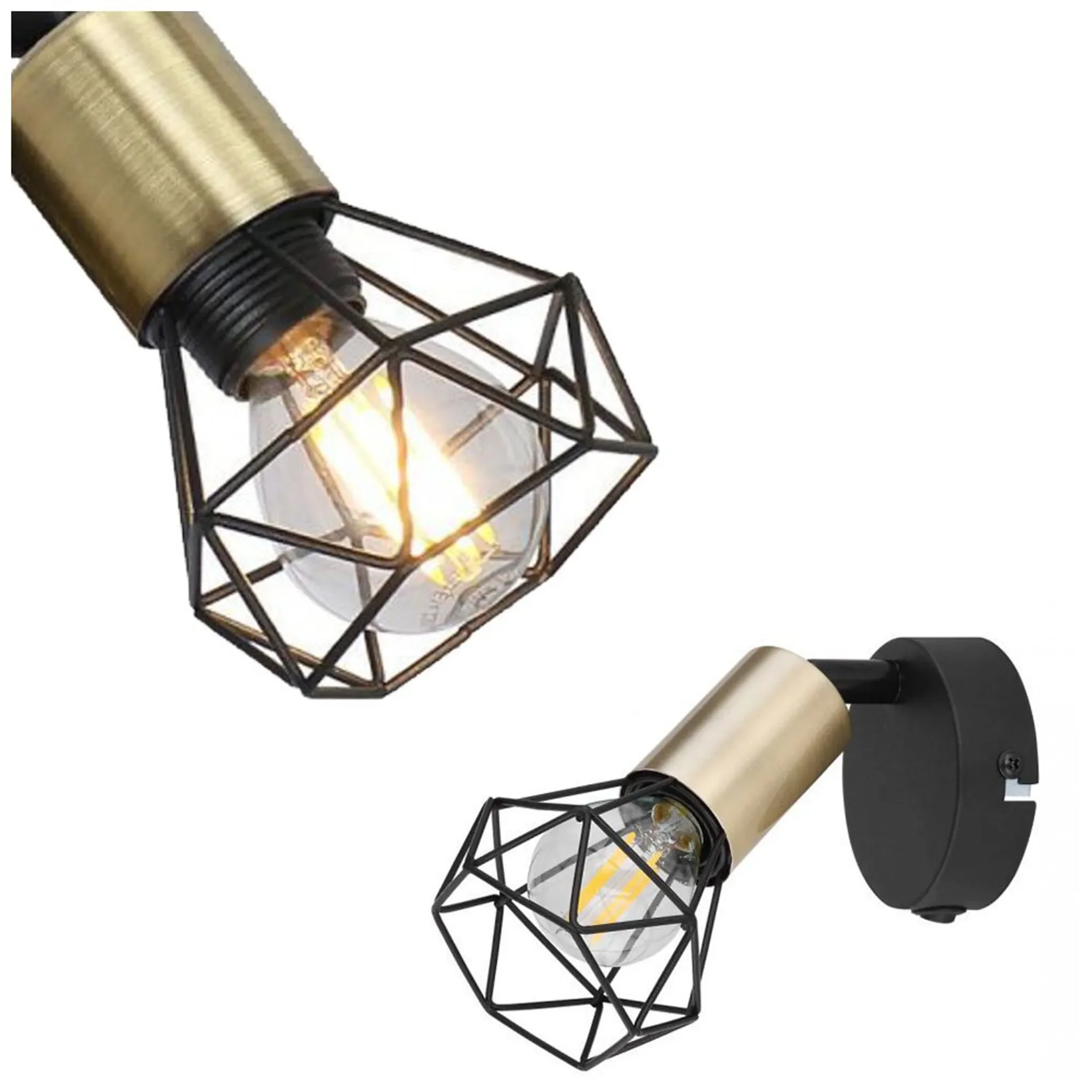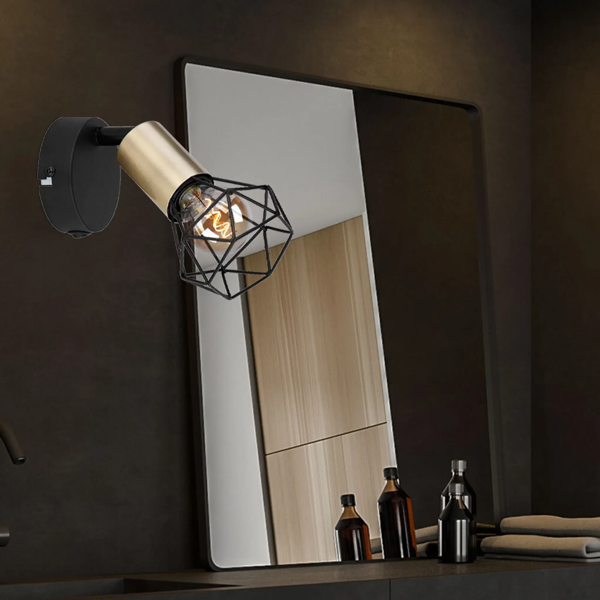Diese kompakte Wandleuchte im industriellen Stil verbindet funktionale Beleuchtung mit markantem Design. Das schwarze Metallgehäuse mit Akzenten in Altmessing und dekorativem Metallgitterschirm sorgt für einen charakterstarken Look – perfekt für moderne Wohnräume, Schlafzimmer oder Arbeitsbereiche.